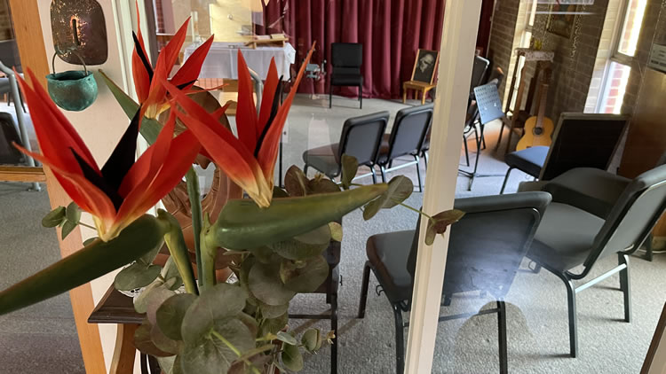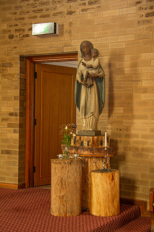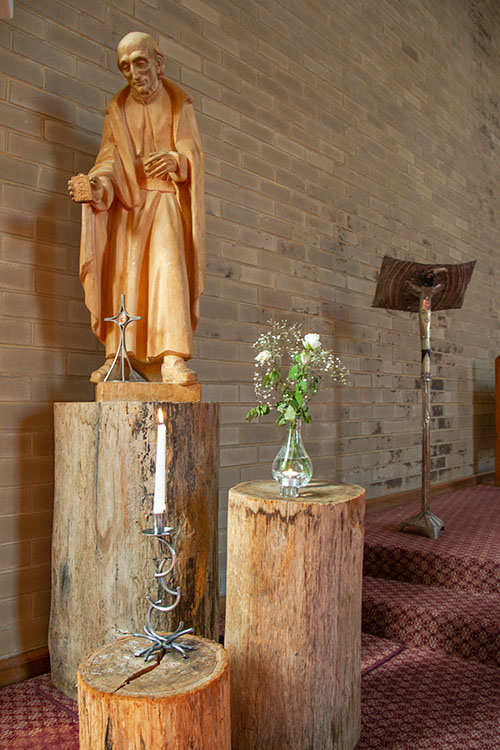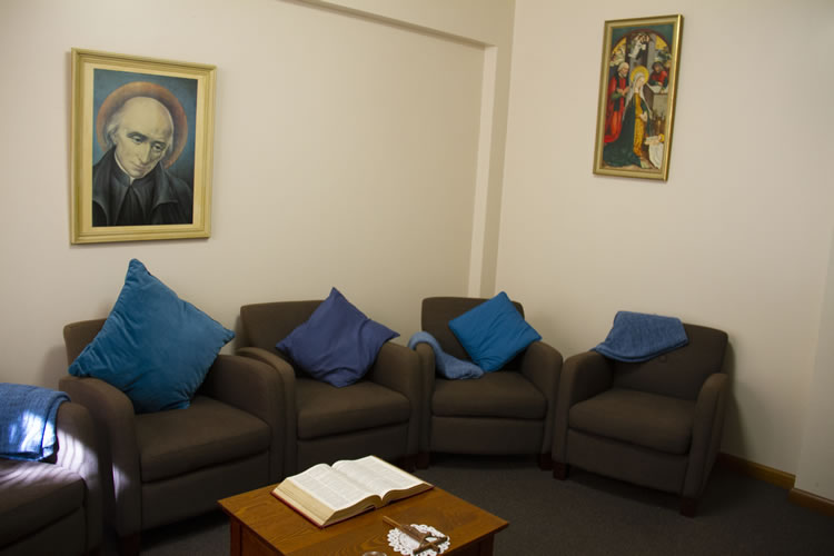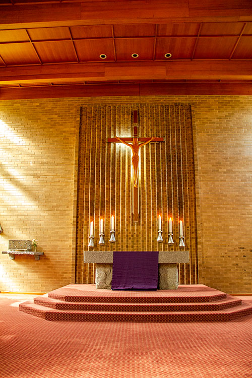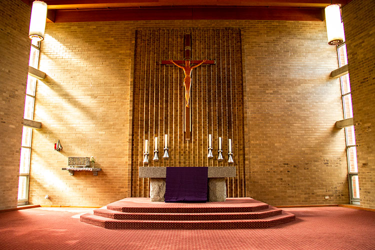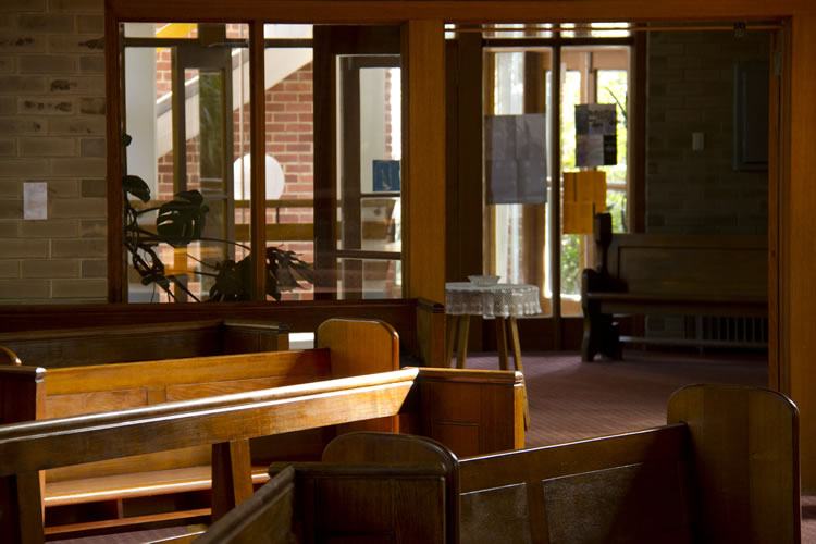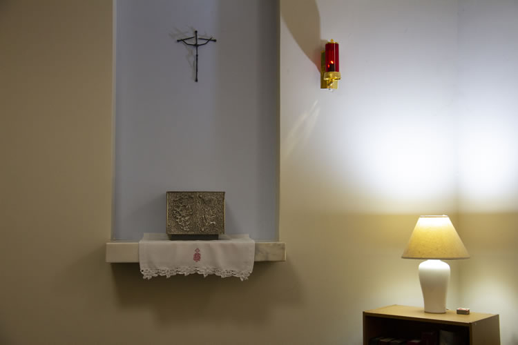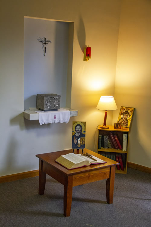The chapel has ample space for 250 or more and is always open and available for individual prayer time, community prayer and liturgical celebrations.
